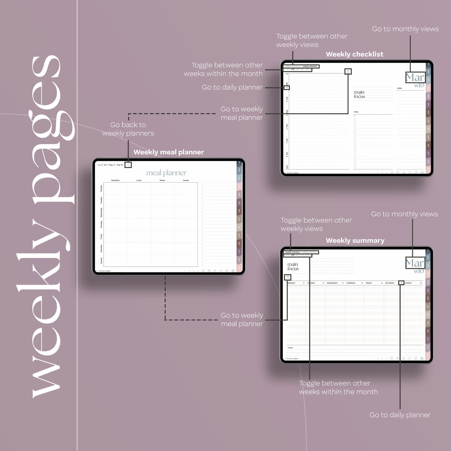 Most people purchase these planners for their iPads or other tablets. While you can use the planner on a laptop or a cellphone, they're best experienced on an iPad or tablet. A stylus is handy if you own one. You will also need a PDF annotating app like GoodNotes (Apple), Samsung Notes (native Samsung app) or Xodo, Notability, Penly...