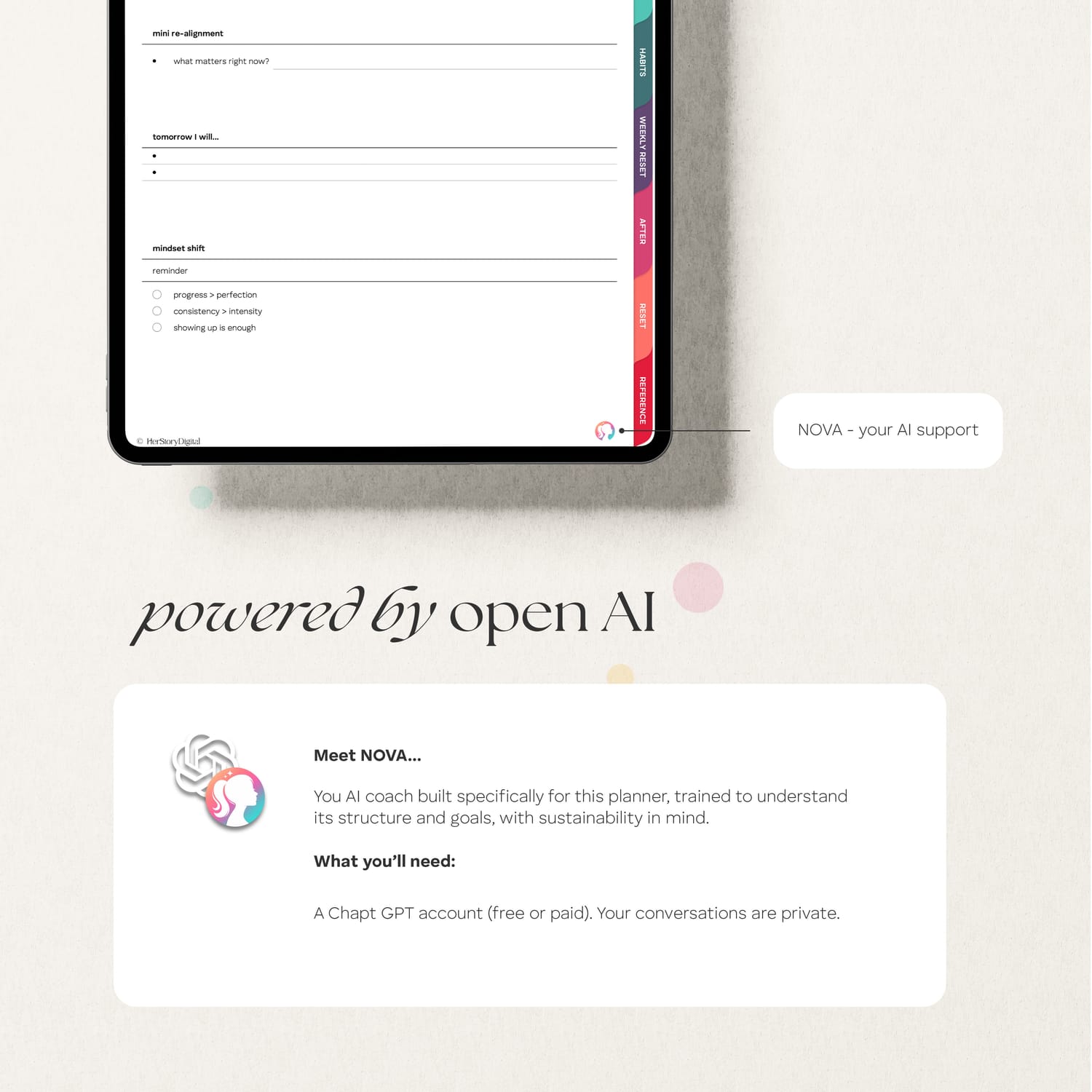 You’ll also have optional access to NOVA — a custom AI coach designed specifically for this planner to help you with daily decisions like meals, movement, and focus.